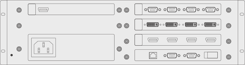 輸入卡、輸出卡、功能卡、控制卡、風扇、電源等采用模塊化插卡式設計,用戶可根據(jù)自身需求定制相應的板卡,靈活配置。同時所有板卡支持熱插拔,在系統(tǒng)工作過程中,可以實現(xiàn)配置更改,方便擴容;在設備出現(xiàn)故障時,不斷電就可以替換問題模塊,不影響系統(tǒng)其他組件的正常運行。