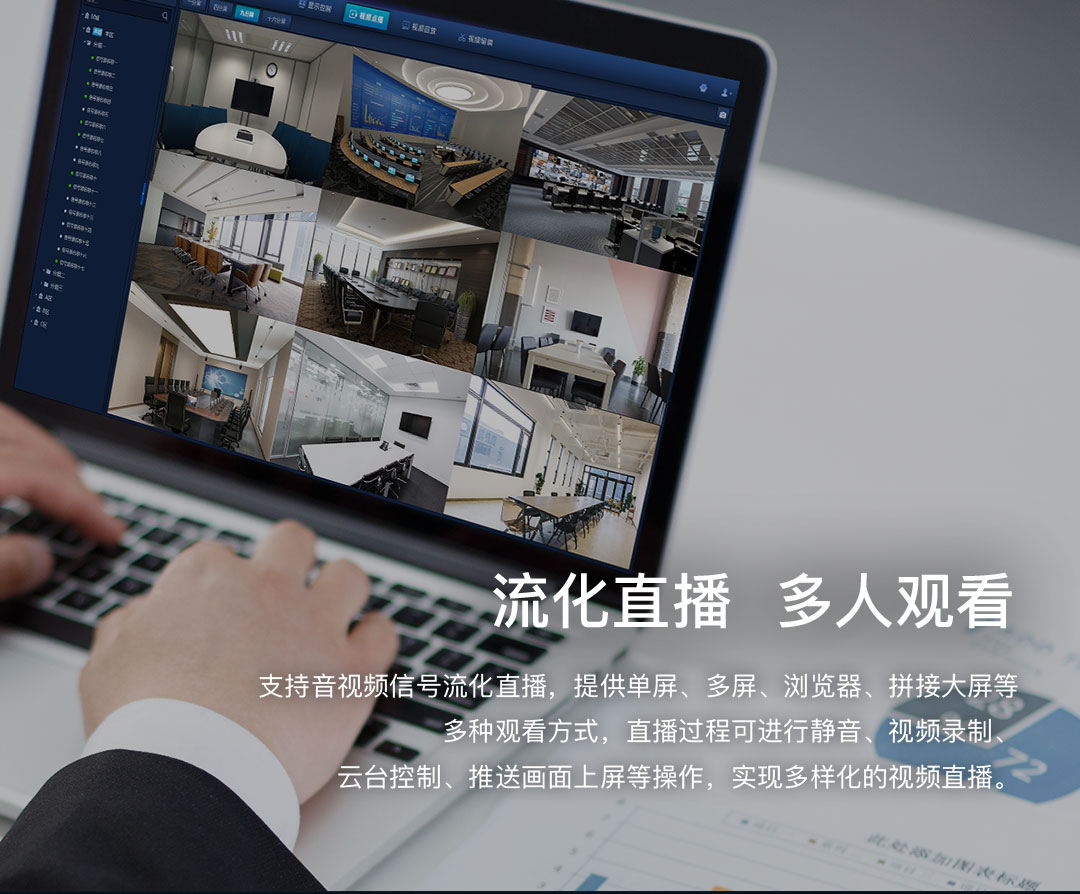 支持音視頻信號(hào)流化直播,提供單屏、多屏、瀏覽器、拼接大屏等多種觀看方式,直播過(guò)程可進(jìn)行靜音、視頻錄制、云臺(tái)控制、推送畫(huà)面上屏等操作,實(shí)現(xiàn)多樣化的視頻直播。