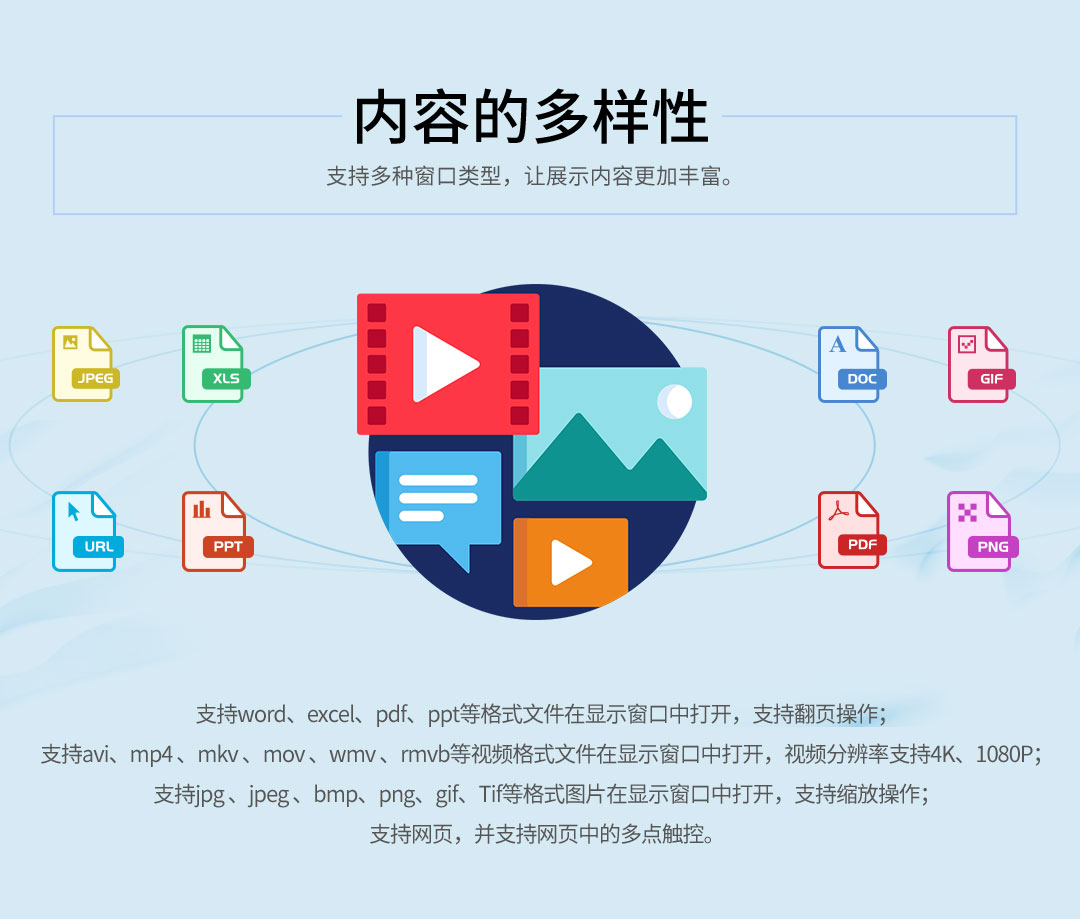 支持word、excel、pdf、ppt等格式文件在顯示窗口中打開,支持翻頁操作;