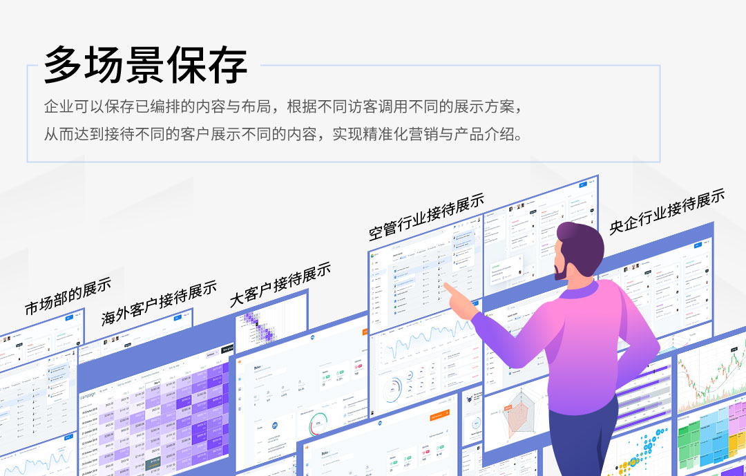 企業(yè)可以保存已編排的內(nèi)容與布局,根據(jù)不同訪客調(diào)用不同的展示方案,