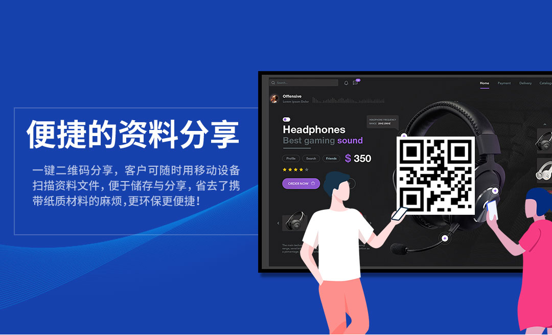 一鍵二維碼分享,客戶可隨時(shí)用移動(dòng)設(shè)備掃描資料文件,便于儲(chǔ)存與分享,省去了攜帶紙質(zhì)材料的麻煩,更環(huán)保更便捷!