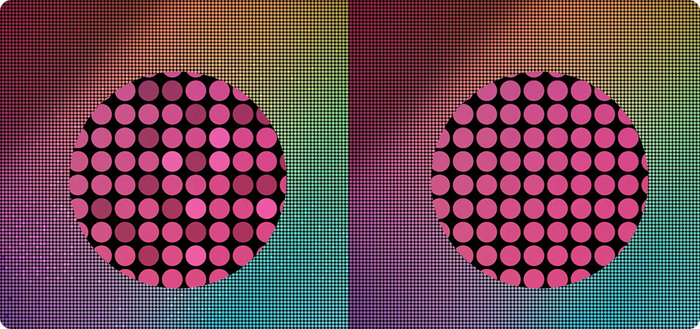 LED 箱體及模組拼接時,交界處會出現亮度不均現象,通過UniLic系統簡單的設置及調節即可解決邊緣亮暗對比的差異,保持屏幕亮度一致。